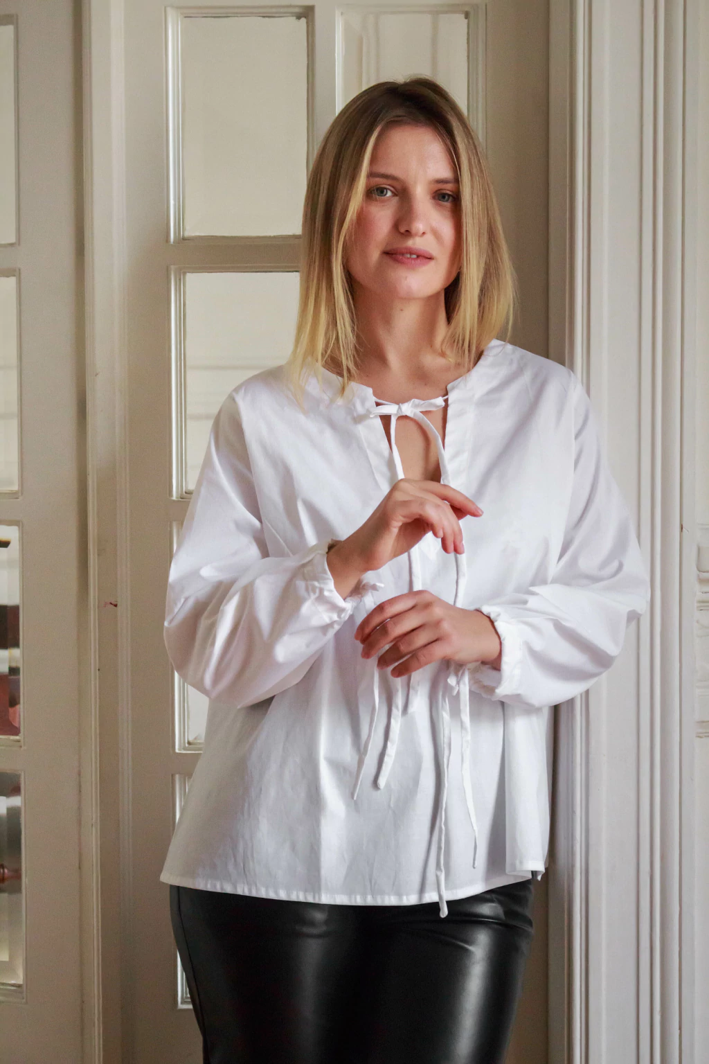 La blusa Lara esta confeccionada en poplin con elastano. Composición 97% algodon, 3% elastano